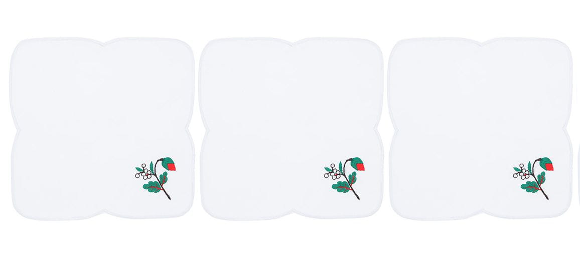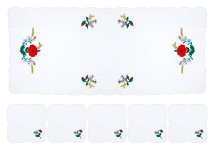 • w skład zestawu wchodzi: 1 bieżnik o wymiarach 48 x 108 cm + 6 serwetek o wymiarach 20,5 x 20,5 cm,