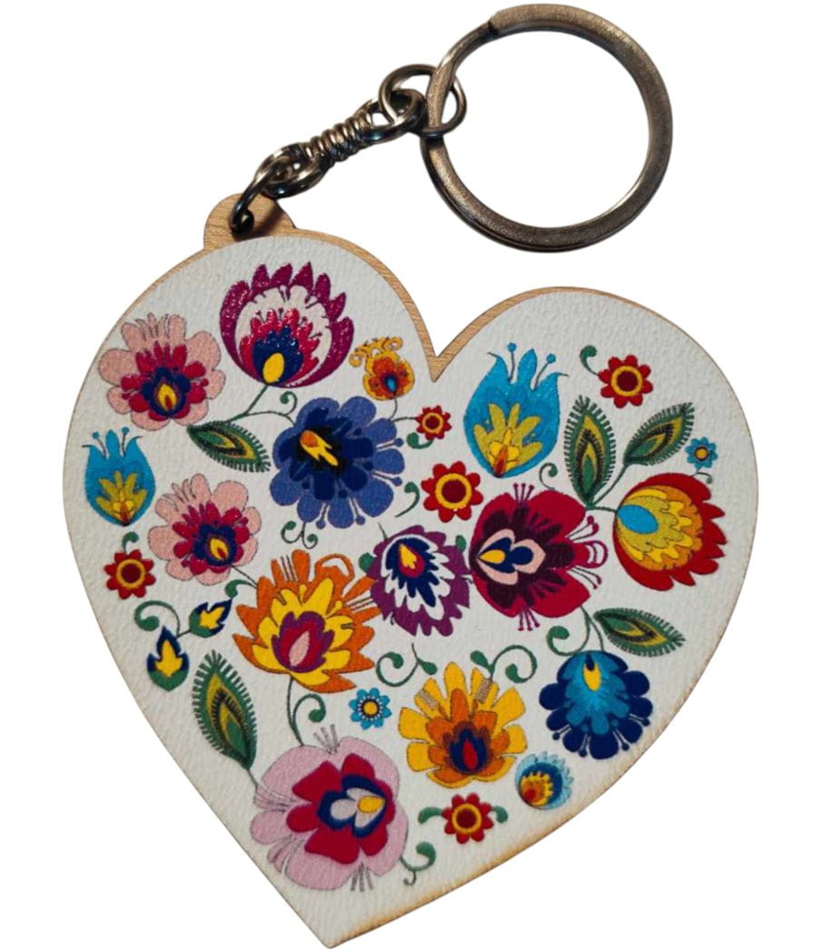 Podaruj bliskiej osobie wyjątkowy drobiazg, który zachwyca tradycyjnym polskim wzornictwem! Drewniany brelok w kształcie serca to połączenie folkowego stylu i praktycznego dodatku do kluczy czy torebki.