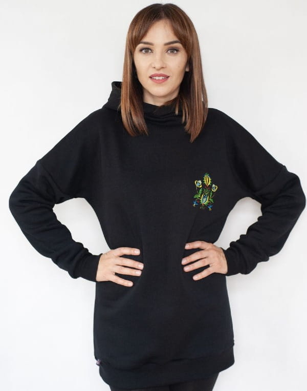 Styl, który mówi o Tobie Czarna kolorystyka w połączeniu z barwnym haftem to kwintesencja elegancji z etnicznym twistem. To bluza, która świetnie komponuje się zarówno z jeansami, jak i casualowymi spodniami czy spódnicą. Idealna na nieformalne spotkania, ale również do tworzenia bardziej wyrafinowanych stylizacji. Bluza ta jest hołdem dla polskiej tradycji, jednocześnie wpisując się w nowoczesne trendy mody.