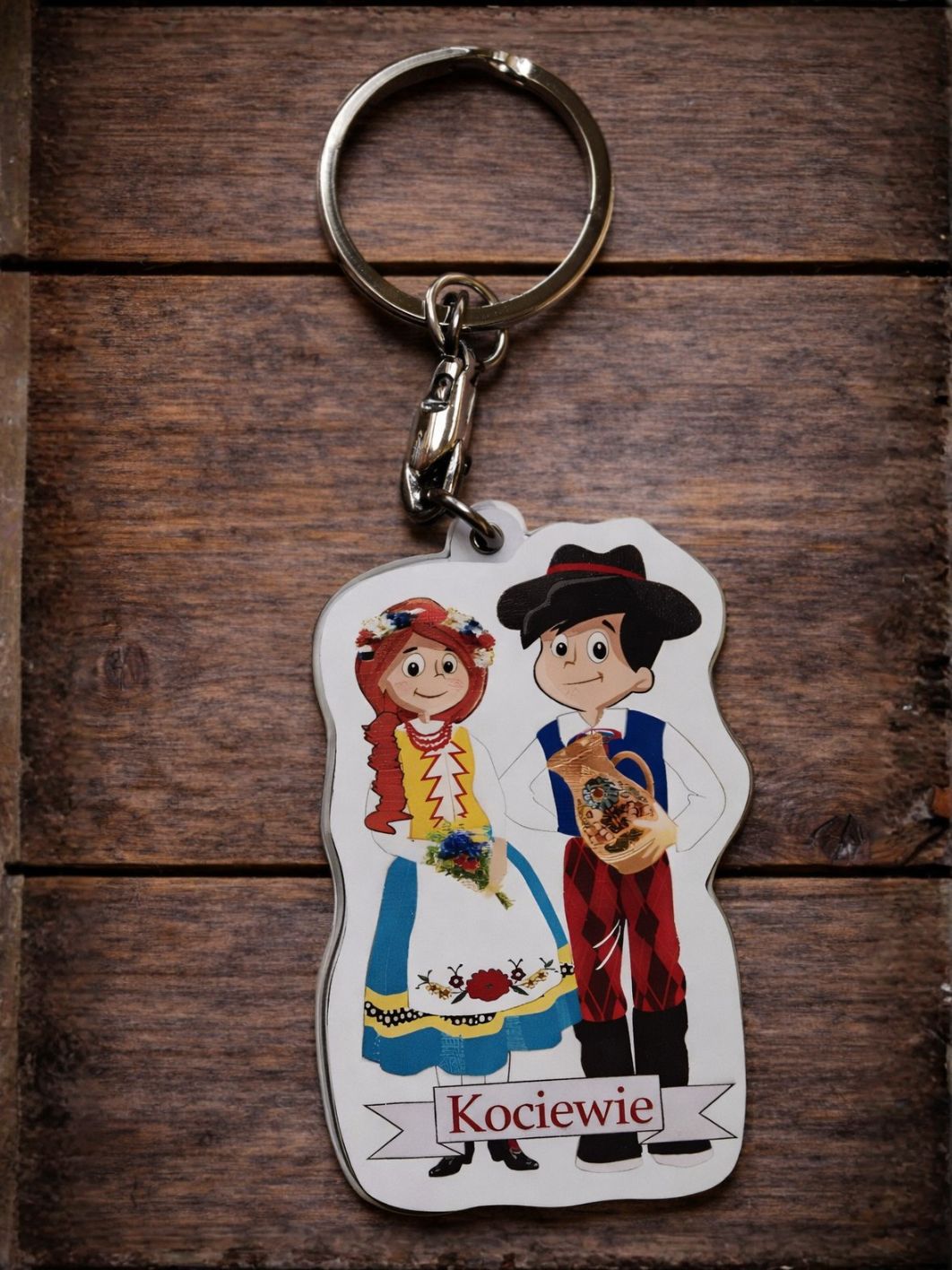Brelok drewniany z parą w strojach z regionu Kociewia. Ozdoba kluczy do domu, samochodu i pracy z taką ozdobą zawsze się znajdą.
