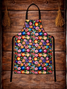 Fartuszek kuchenny z motywem kwiatów łowickich, czarny