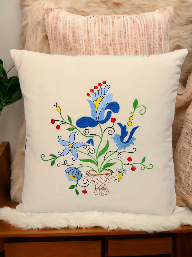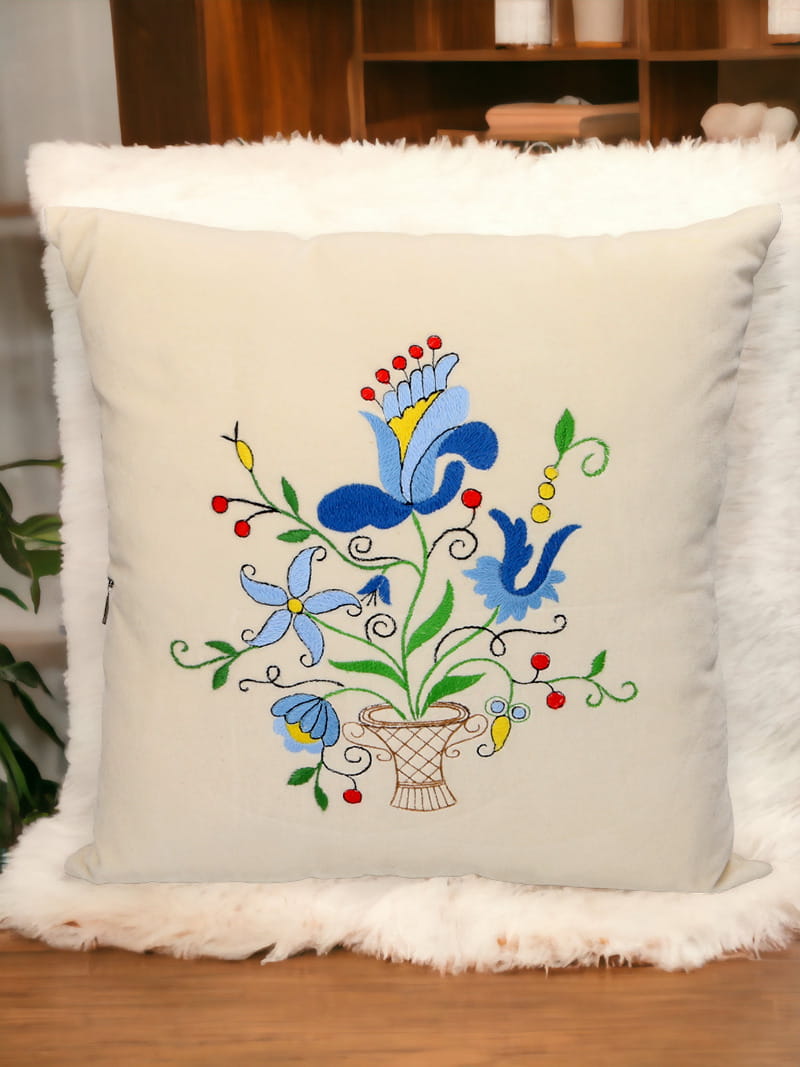 Poduszka haftowana (Żukowo) to wyjątkowy produkt o wysokiej jakości wykonania, który wyróżnia się unikalnym wzornictwem i tradycyjną techniką haftu kaszubskiego szkoły żukowskiej. Poduszka wykonana jest z miękkiego, kremowego materiału, który jest nie tylko przyjemny w dotyku, ale także trwały, co zapewnia długotrwałe użytkowanie.