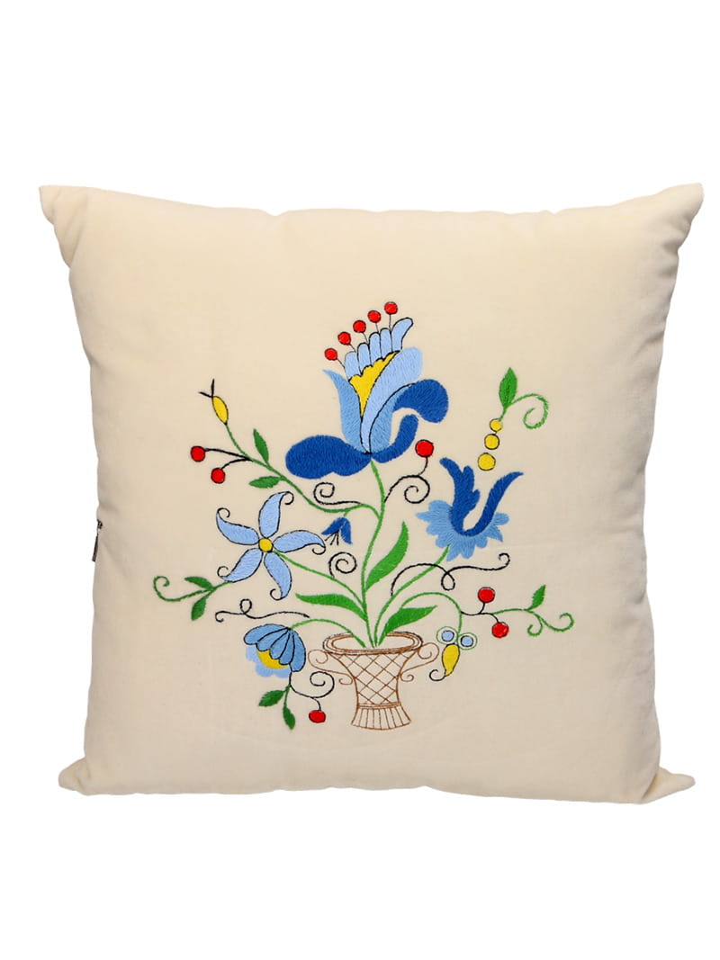 Wzory i zdobienia są haftowane tylko na jednej stronie poduszki, co dodaje jej elegancji i delikatności. Druga strona poduszki jest gładka i jednokolorowa. Poduszka wyposażona jest w wygodny zamek błyskawiczny, co ułatwia zdjęcie i pranie pokrowca. Dzięki temu poduszka jest łatwa w utrzymaniu w czystości.