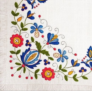 Paczka zawiera 20 szt. Trójwarstwowe serwetki papierowe z kolorowym nadrukiem kaszubskich wzorów żukowskich.