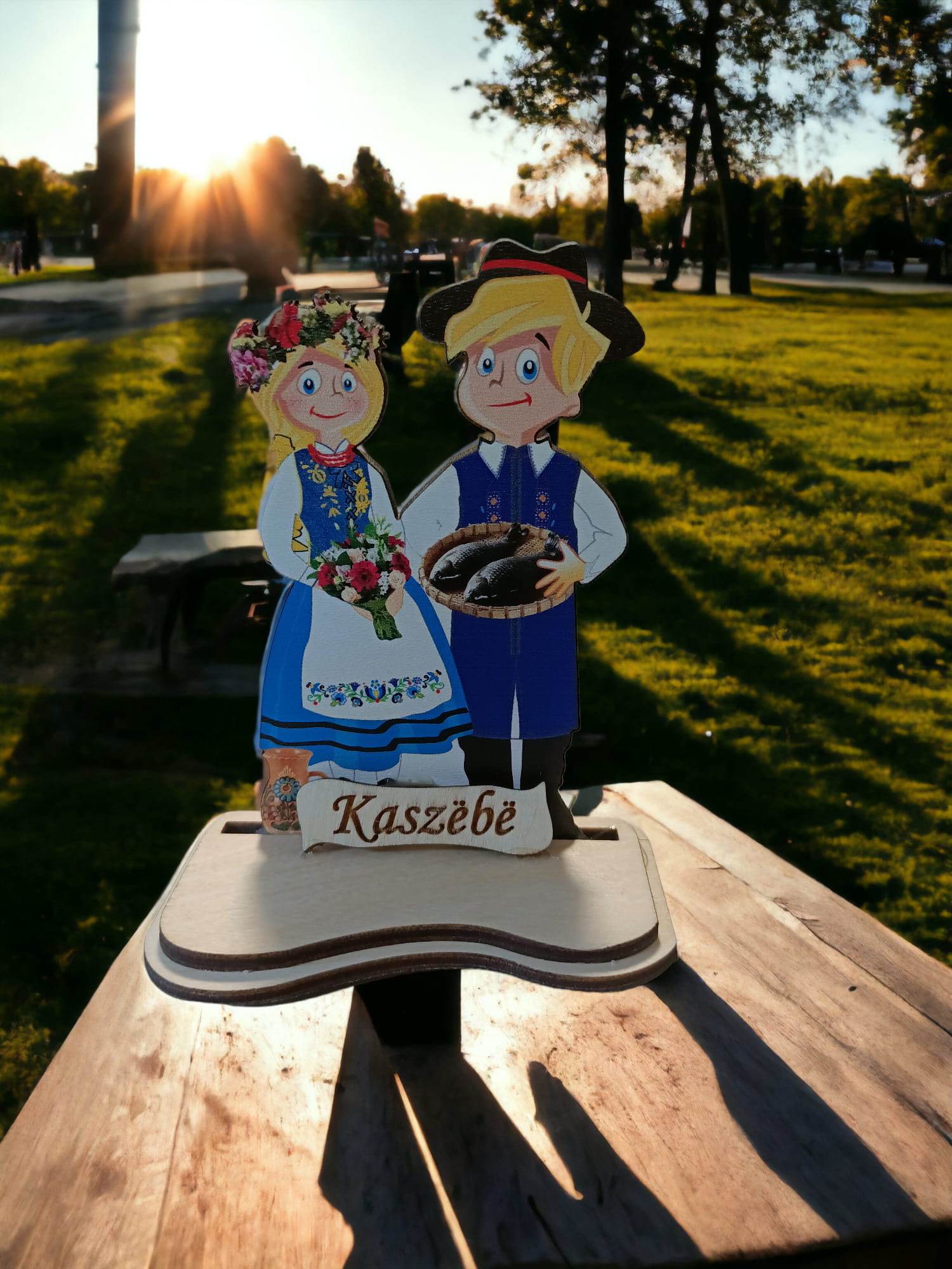 Dodaj odrobinę kaszubskiego folkloru do swojego wnętrza lub podaruj tę uroczą pamiątkę komuś bliskiemu, aby przywołać piękne wspomnienia z wakacyjnych podróży. Drewniana para kaszubska na podstawce nie tylko ozdobi przestrzeń, ale również wyrazi szacunek dla dziedzictwa Kaszub.