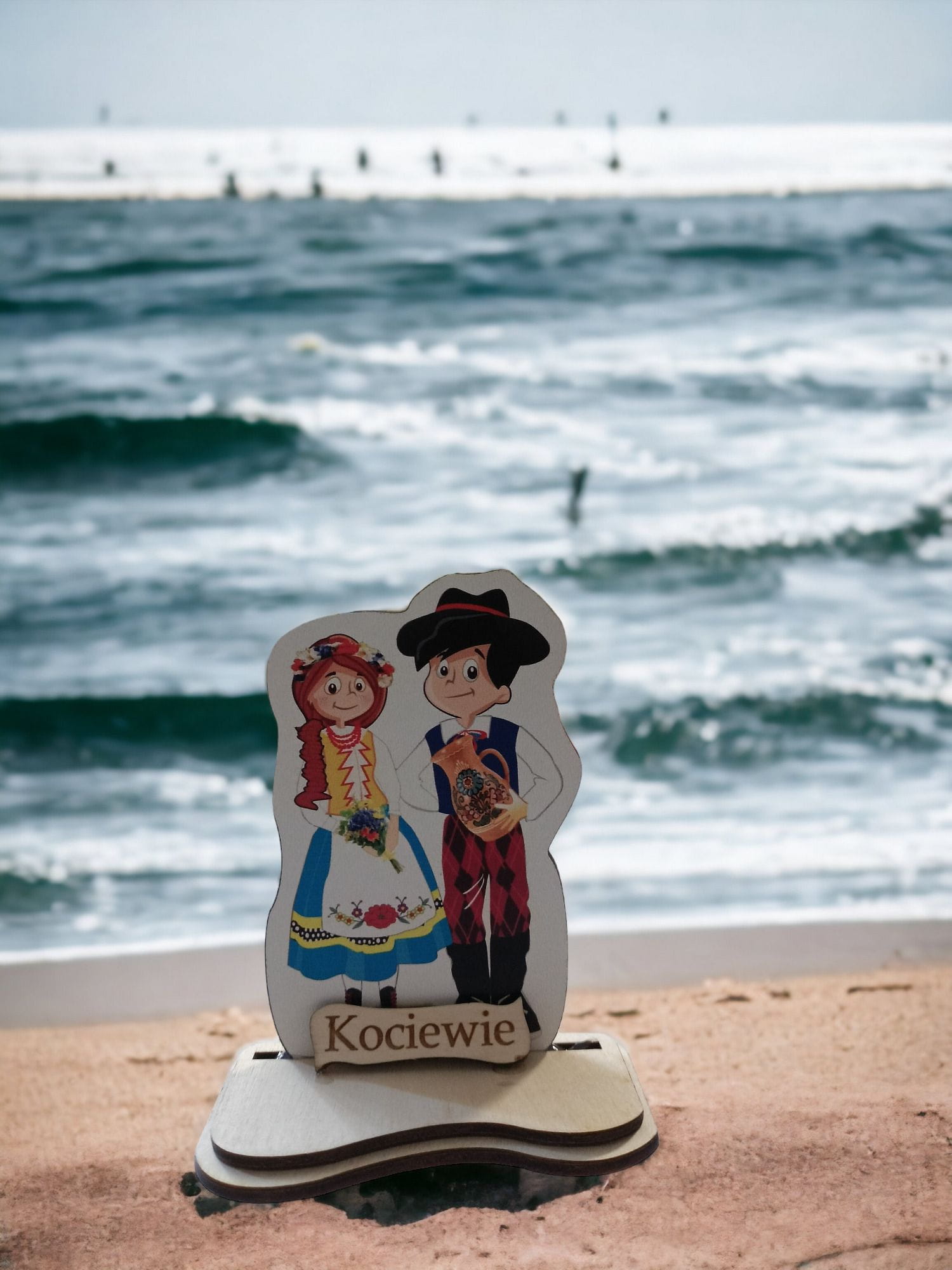 Dodaj do swojej kolekcji tę uroczą drewnianą parę kociewską na podstawce i ciesz się pięknem tradycji w każdym kącie swojego wnętrza.