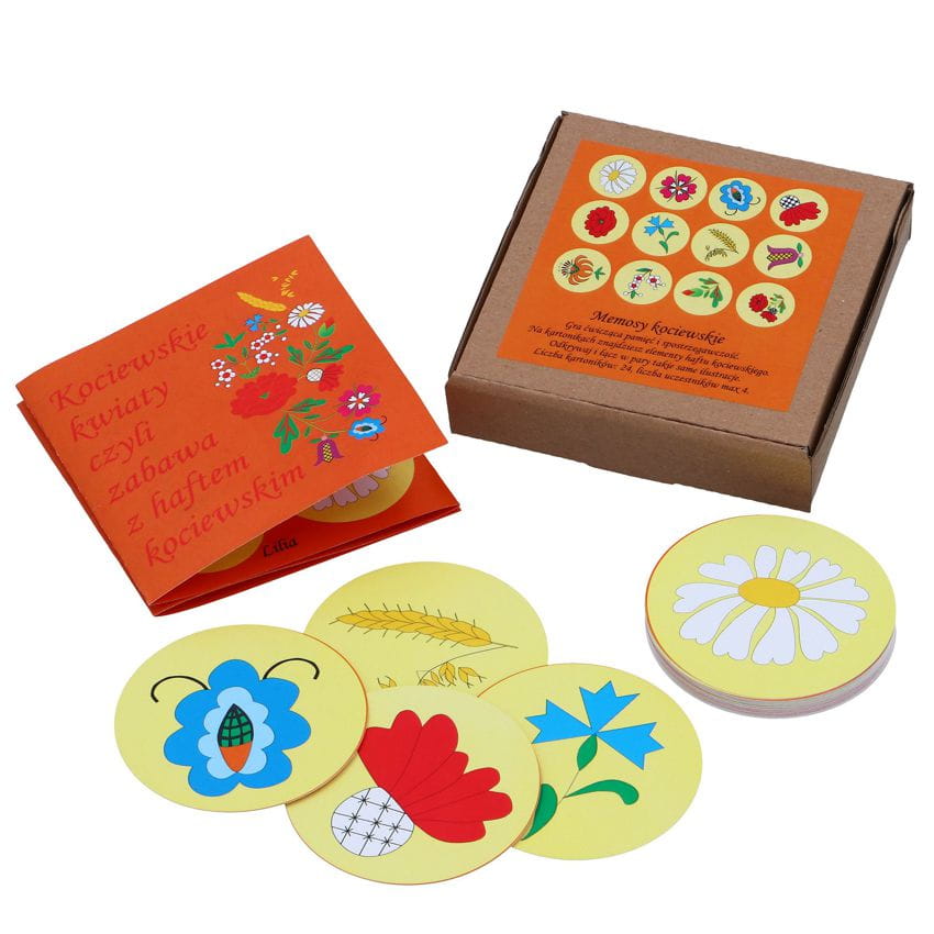 Edukacyjna gra ćwicząca pamięć i spostrzegawczość. Na memosach znajdują się elementy haftu kociewskiego.