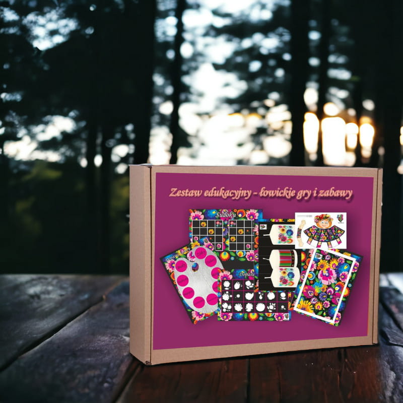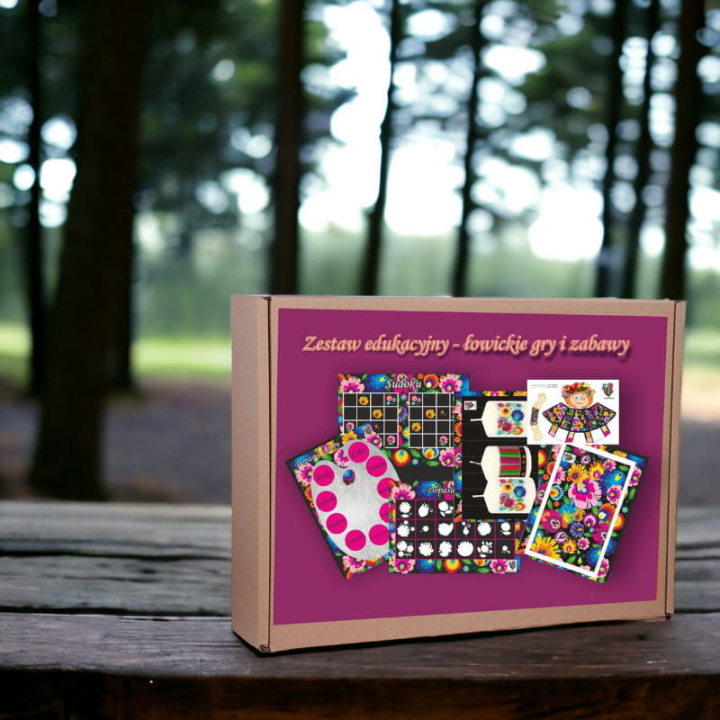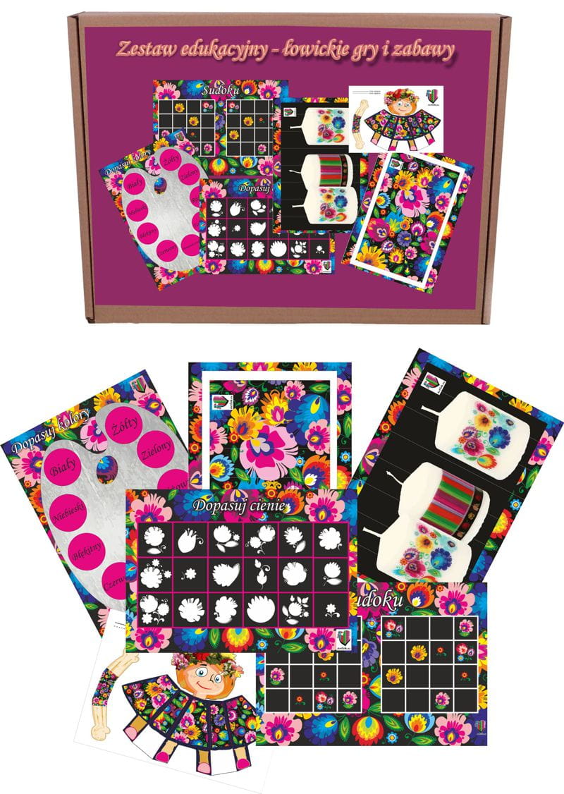 Zestaw edukacyjny dla dzieci - folkowy Łowicz eco. Wersja na czarnym tle