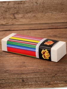 Gumka została zawinięta w papierową opaskę z ludowym wzorem, podkreślającą jej regionalny charakter. Dzięki poręcznemu rozmiarowi jest wygodna w użyciu i doskonale sprawdzi się w szkole, biurze oraz w domu. Skutecznie usuwa ślady ołówka, a jednocześnie stanowi ciekawy folkowy akcent na biurku.