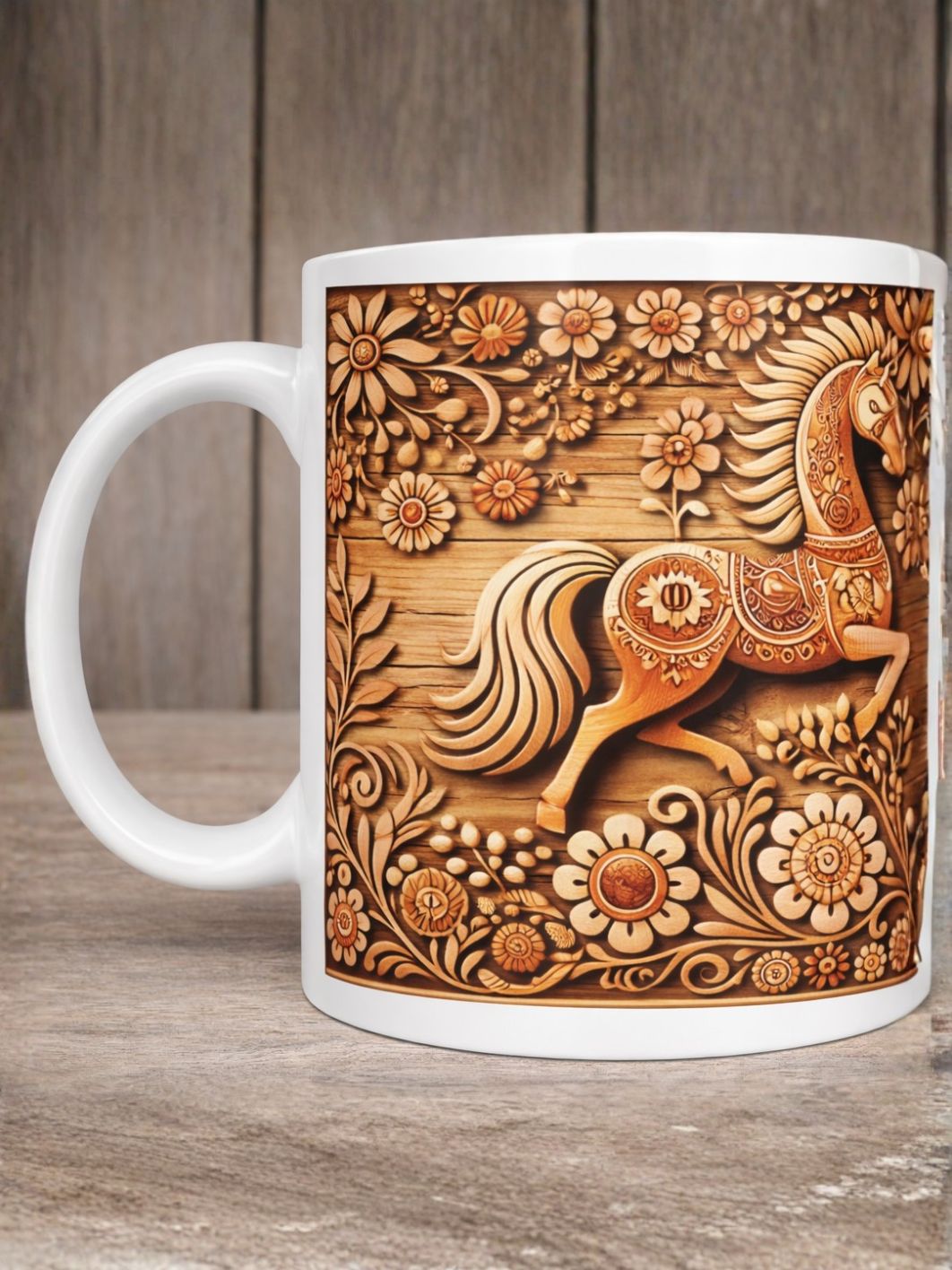 Kubek folkowy „Konie folk” to niezwykłe połączenie tradycyjnej estetyki z funkcjonalnością. Zdobiony kolorowym motywem dwóch koni otoczonych barwnymi kwiatami, nawiązuje do bogatej tradycji polskiego rękodzieła ludowego. Taki wzór nie tylko cieszy oko, ale wnosi do wnętrza ciepło i oryginalność.