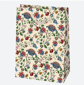 Podaruj prezent w wyjątkowej oprawie – sięgnij po ozdobną torbę prezentową inspirowaną szkołą wdzydzką haftu kaszubskiego, czyli najstarszą i najbardziej barwną odmianę tej sztuki. Wzornictwo torby czerpie z tradycji sięgającej początków XX wieku, zapoczątkowanej przez Teodorę i Izydora Gulgowskich – pionierów Muzeum Kaszubskiego we Wdzydzach Kiszewskich.