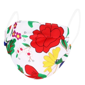 Wygodna maseczka ochronna wielokrotnego użytku na czas pandemii, zdobiona kociewskim akcentem ludowym. Zewnętrzna warstwa z wzorem kociewskim wykonana z materiału o gramaturze 160 g. Wewnętrzna część wykonana z podwójnej warstwy fizeliny o gramaturze 40 g. Maseczka ochronna na twarz