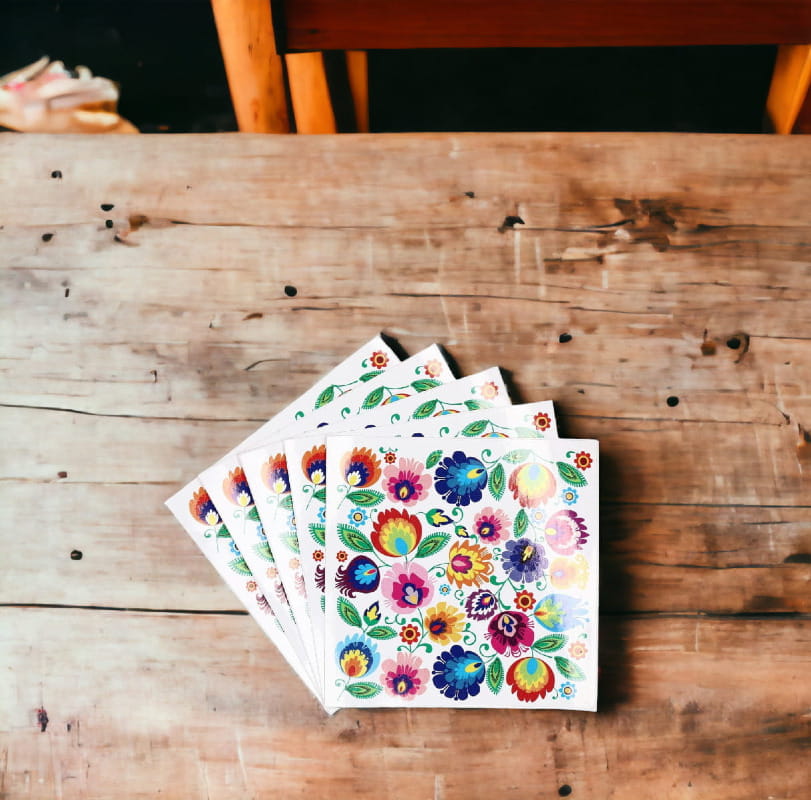 Naklejka „Haft folk łowicki – biała” to wyjątkowy produkt, który łączy funkcjonalność samoprzylepnej dekoracji z estetyką tradycyjnego wzornictwa ludowego z Łowicza. Motywy florystyczne inspirowane wycinanką i haftem łowickim w żywych kolorach prezentują się wyraziście na jasnym tle, tworząc subtelny, a jednocześnie wyrazisty efekt.