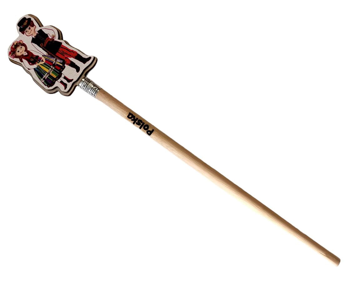 Ołówek zdobi nadruk cyfrowy, przedstawiający uroczą parę w strojach regionalnych, stanowiącą symbol polskiej tożsamości. Dodatkowo, na ołówku znajduje się delikatny grawer z napisem "Polska", podkreślając naszą dumę z przynależności do tego pięknego kraju.