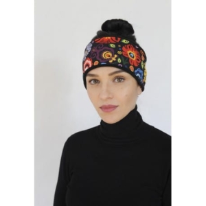 Opaska na głowę ocieplana folk łowicki (czarna)