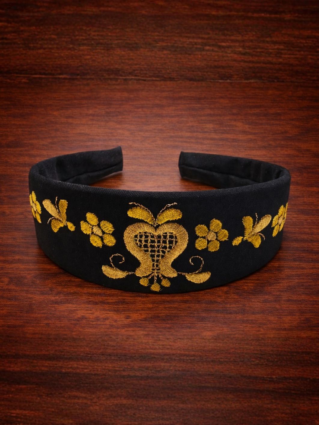 Opaska na głowę – złotnica kaszubska na czarnym tle