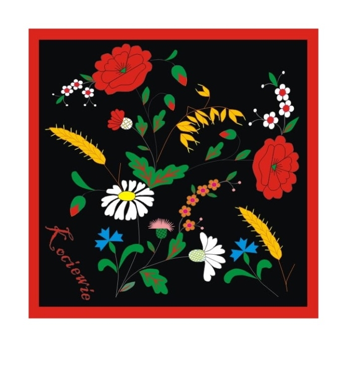 Naklejka inspirowana tradycyjnym haftem kociewskim. Kociewskie wzornictwo ludowe nazywane jest haftem ziemi, ze względu na elementy w nim występujące: maki, kłosy, chabry.