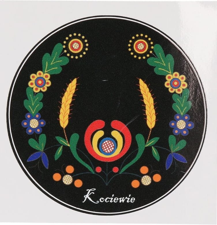 Naklejka okrągła haft kociewski czarny rak