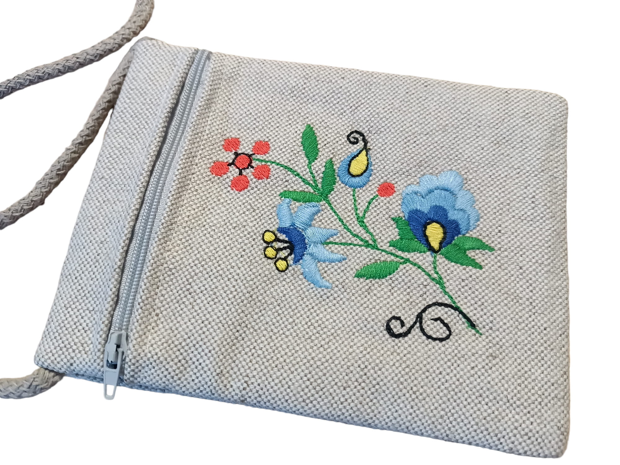 Paszportówka haftowana na szyję - lniana ze wzorem kaszubskim