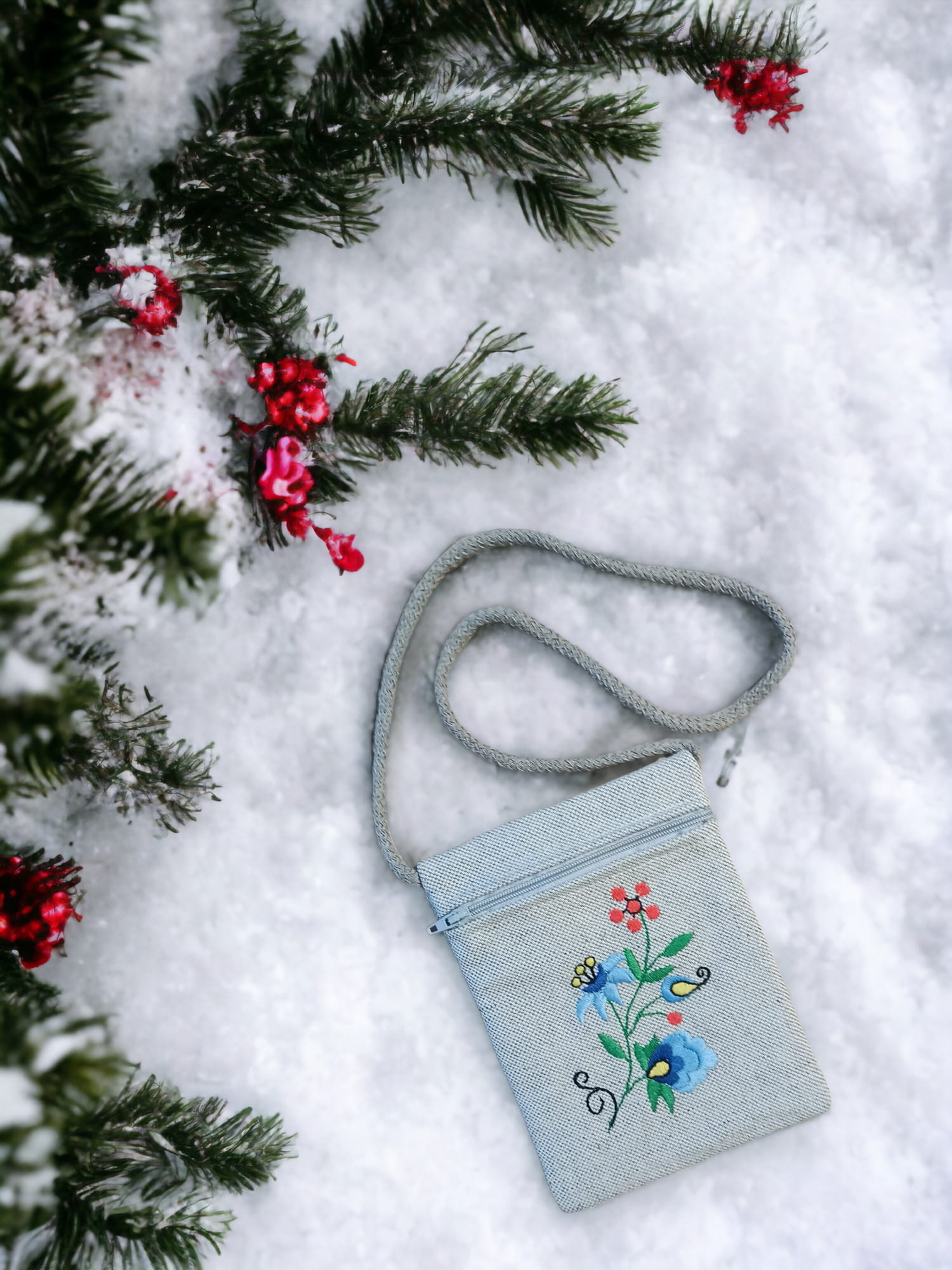 Haft kaszubski o motywach kwiatowych, zdobiący paszportówkę, to wyraz tradycji i unikalności. Każdy detal został starannie wykonany, tworząc wzór, który wzbogaca estetykę tego praktycznego akcesorium. Zapięcie na suwak sprawia, że Twoje dokumenty są bezpieczne, a wnętrze paszportówki zostało dodatkowo wykończone beżową poszewką, nadającą całości jeszcze wyższy poziom elegancji. Paszportówka ma kompaktowe wymiary, wysokość około 16,5 cm i szerokość 11 cm, co sprawia, że łatwo ją nosić na szyi, jednocześnie zapewniając bezpieczeństwo i wygodę podczas podróży.