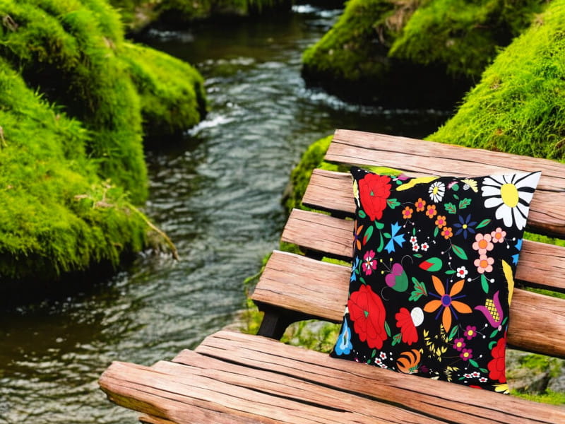 Poduszka dekoracyjna z haftem kociewskim – czarna to wyrazisty akcent we wnętrzu, który łączy funkcjonalność z estetyką ludowego wzornictwa. Inspirowana motywami kwiatowymi charakterystycznymi dla regionu Kociewia, prezentuje folklor w nowoczesnym i eleganckim wydaniu.
