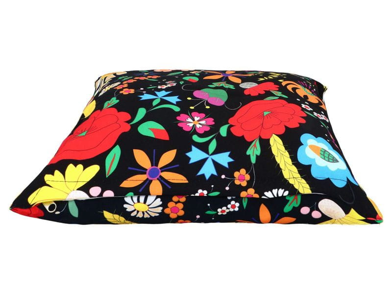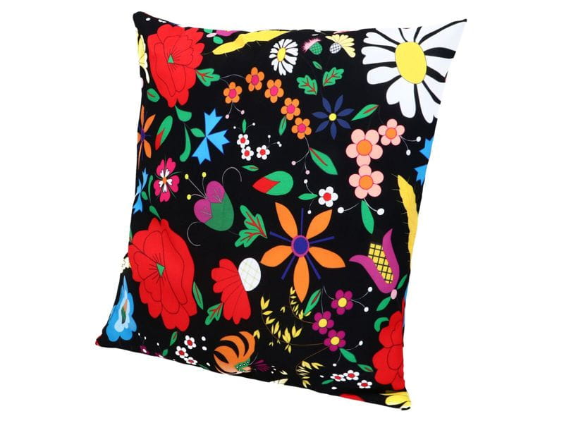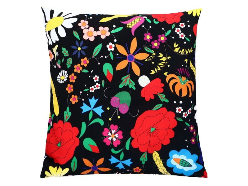 Poduszka dekoracyjna z motywem haftu kociewskiego – czarna, 40 × 40 cm