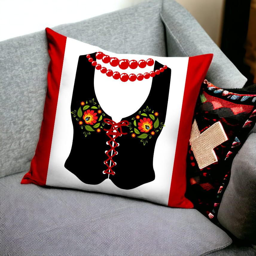 Poszewka dekoracyjna z wzorem kamizelki folkowej
