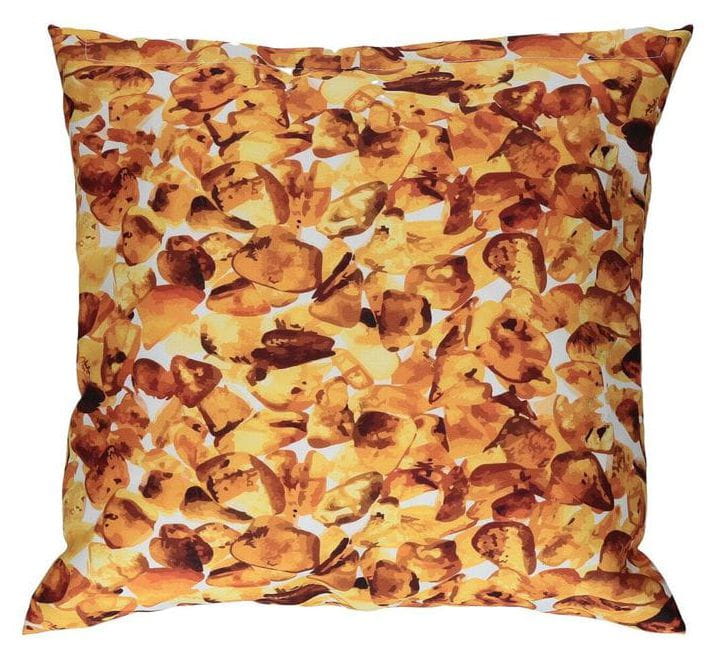 Przedstawia kamienie bursztynowe. Poszewka zapinana zamkiem błyskawicznym. Dwustronny nadruk.