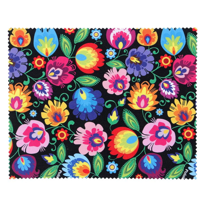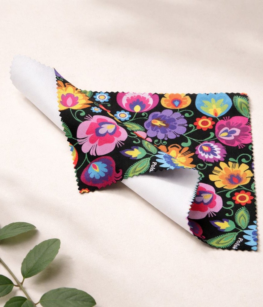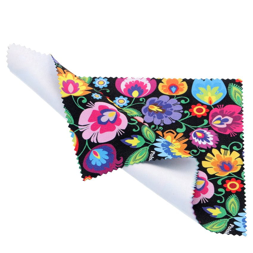 Chusteczka do okularów z mikrofibry ze wzorem łowickim. Pomocna dla wszystkich posiadaczy okularów, smartfonów, tabletów, notebooków i ekranów LCD. Bardzo przydatna nie tylko w domu, ale również w biurze i szkole. Łowicki wzór zawsze modny i elegancki.