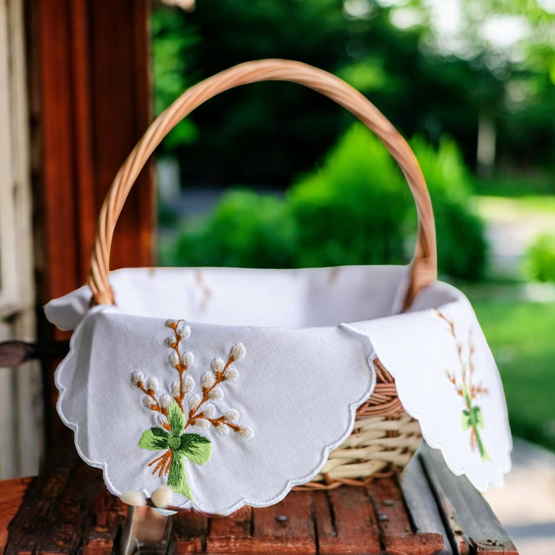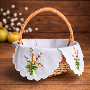 Wprowadź tradycję i wiosenny urok do swojego wielkanocnego koszyczka – wybierz haftowaną serwetkę z motywem bazi, która zachwyca jakością i duszą.