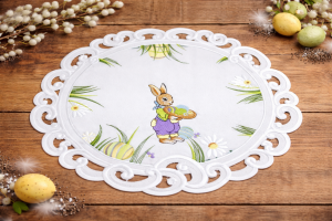 Serwetka wielkanocna na stół o średnicy 40 cm z uroczym króliczkiem to doskonały dodatek, który podkreśli wyjątkową atmosferę świąteczną przy wielkanocnym stole. Ręcznie wykonana serwetka z wysokiej jakości materiałów gwarantuje zarówno estetykę, jak i trwałość.