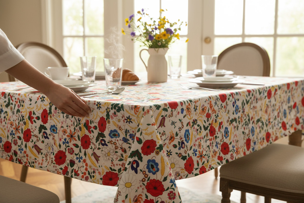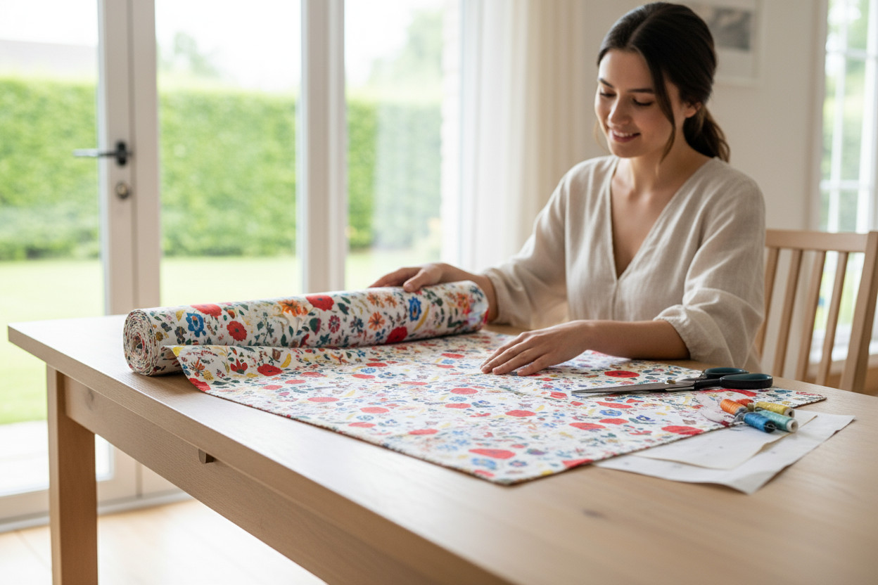 Tkanina regionalna z kociewskim wzorem haftów ludowych - idealna do dekoracji i szycia