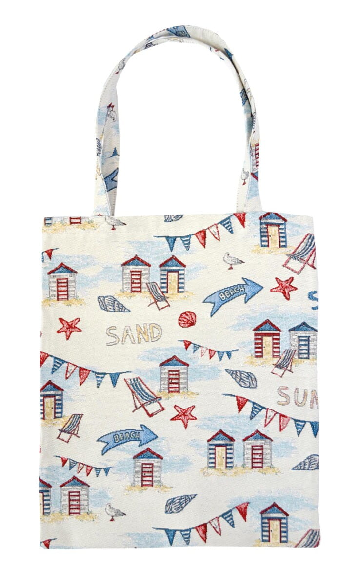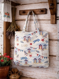 Torba gobelinowa z motywem plaży.