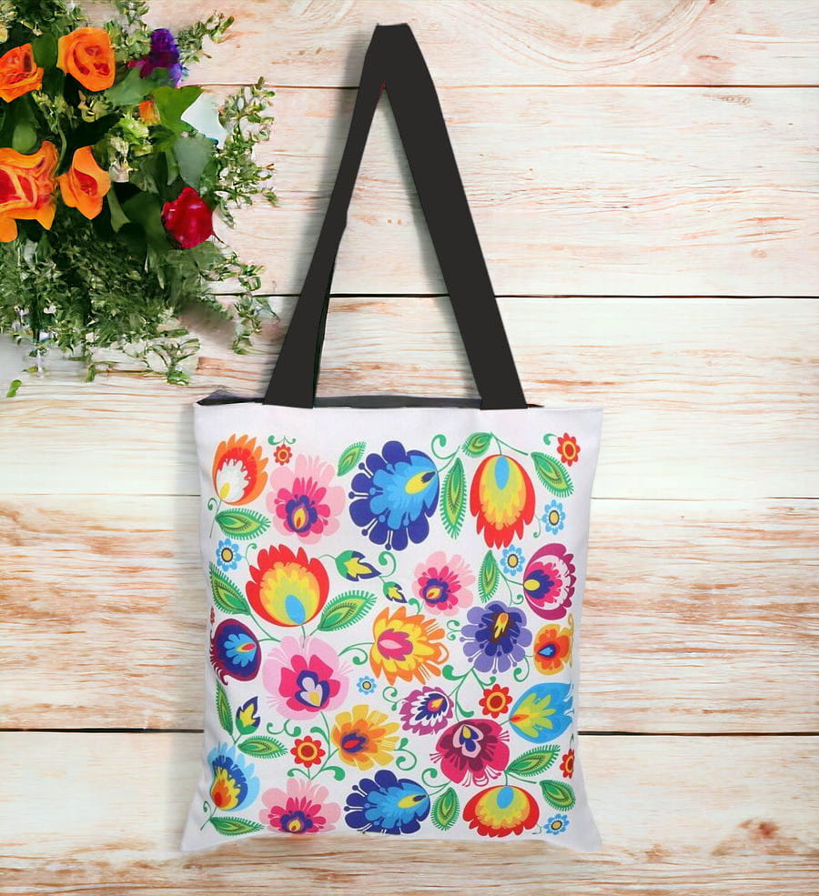 Idealna jako funkcjonalna torba na zakupy, prezent folkowy lub ekologiczna alternatywa dla plastiku.