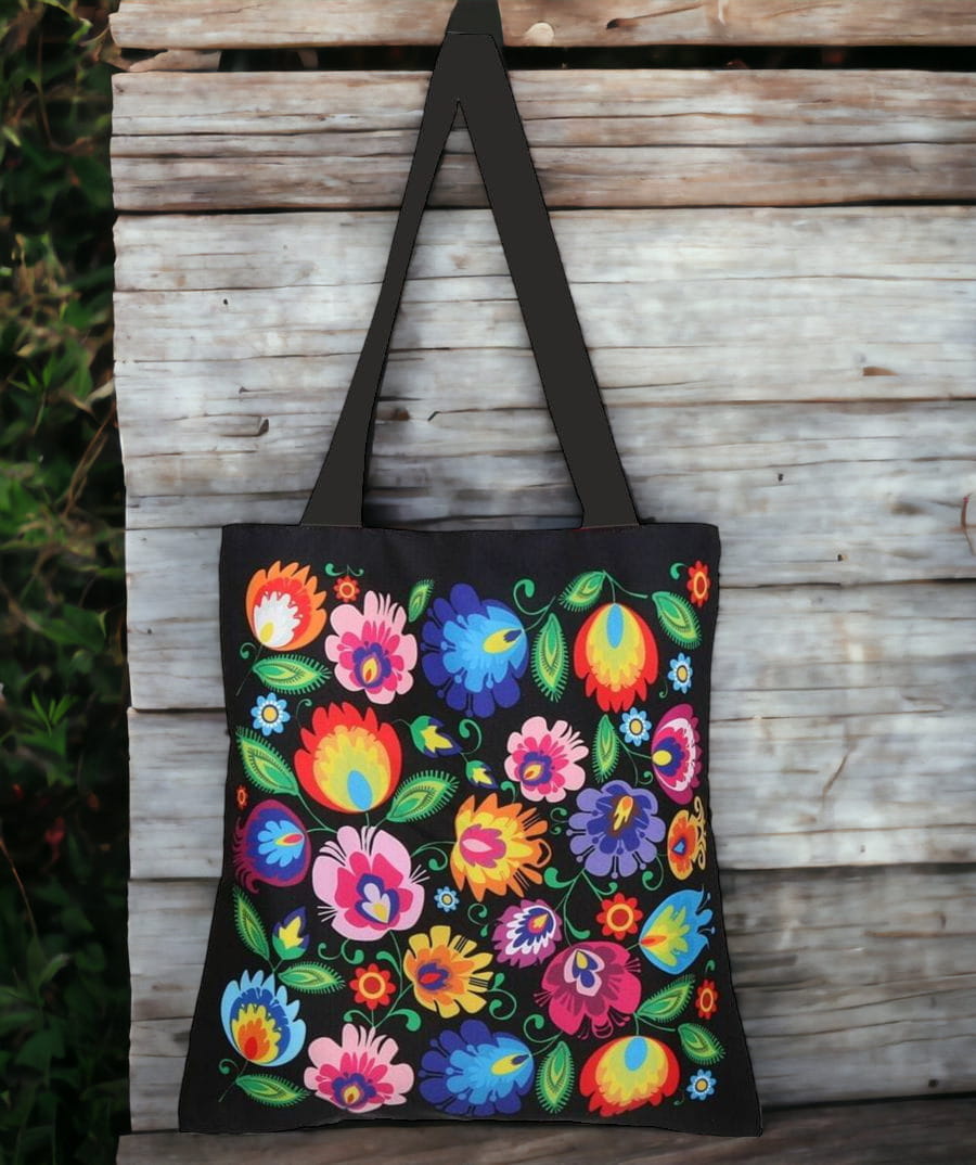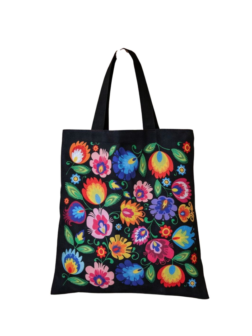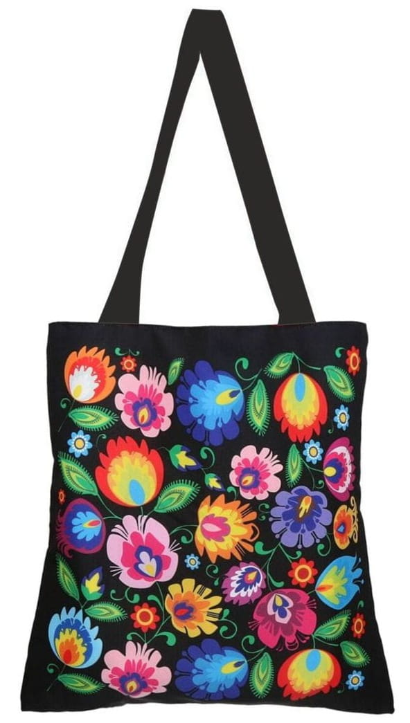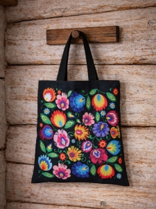 Torba łowicka czarna z długim uchem to doskonały wybór dla osób ceniących estetykę polskiego folkloru i funkcjonalne rozwiązania w codziennym użytkowaniu. Projekt inspirowany kwiatowym haftem łowickim nadaje torbie oryginalnego i ponadczasowego charakteru.