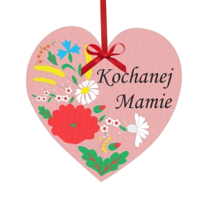 Zawieszka zdobiona motywem haftu kociewskiego łączy ludowe zdobienia z ciepłym, rodzinnym charakterem. Barwne kwiatowe elementy podkreślają wyjątkowość Dnia Matki.