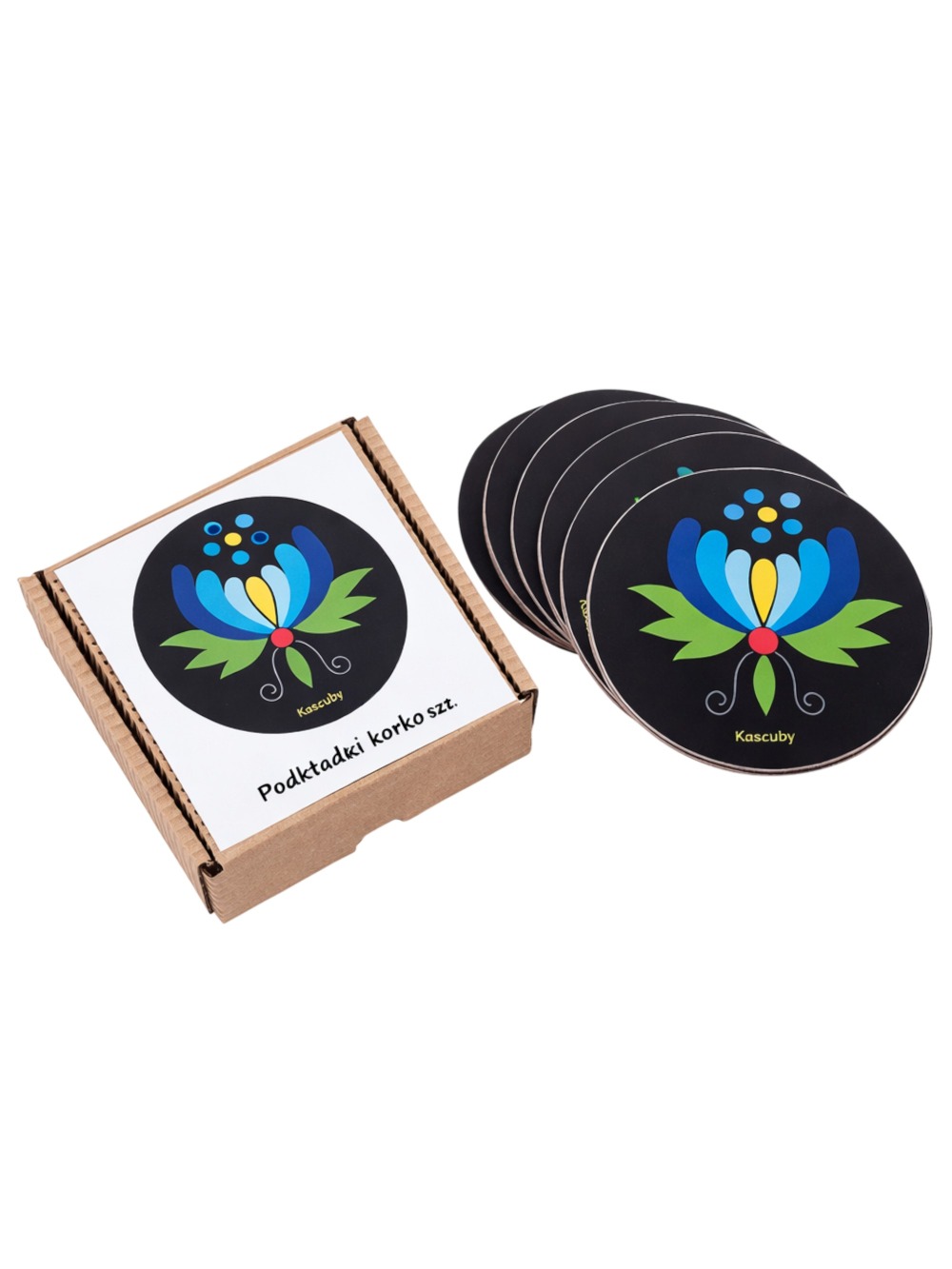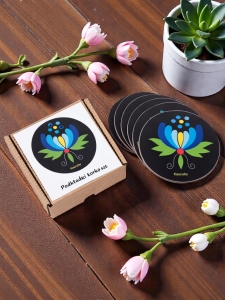 Czarne podkładki korkowe z motywem palmety kaszubskiej to wyraziste połączenie tradycji i nowoczesnego designu. Inspirowane sztuką ludową regionu Kaszuby, idealnie wpisują się w nurt etnodesignu i stanowią funkcjonalny element dekoracyjny.